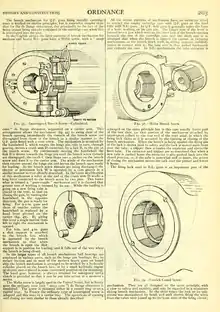 mechanism. They are all designed on the same principle, with a view to safety and rapidity, and may be regarded as a miniature sliding breech mechanism. In the older types the lock or its substitute was manipulated by hand, and with electric firing the wires