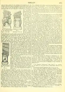 Considerable activity was displayed in England in the 10th century in organ-building on a large scale for churches and monasteries, such as the monster organ for Bishop Alphege at Winchester, which had 400 bronze pipes, 26 bellows and 2 manuals of 20 keys, each governing 10 pipes.' There is also the elaborate organ presented by St Dunstan to his monastery at Malmesbury.'"
