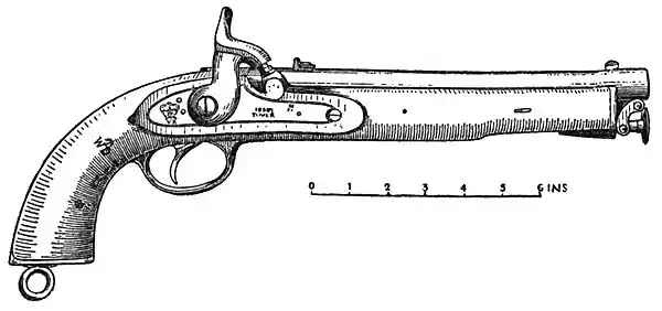 | Fig. 5—Percussion-lock pistol (Royal United Service Institution). |