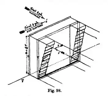 This form is that frequently occurring, as thrown from the ends of rectangular buildings, and described in treating of fissures, the end wall being the parallelopiped, and the wedges the adherent portions of masonry, fractured from the side walls.