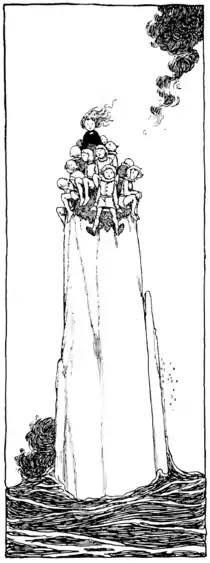 her blistered hands, they found out what their sister was doing for their sakes. The youngest brother wept, and when his tears fell upon her hands, Elise felt no more pain, the blisters disappeared.
