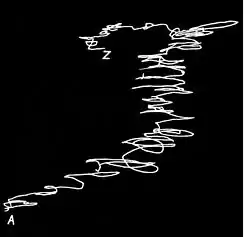 To obtain similar results for a visual impression, a silently swinging pendulum is used, the subject watching the oscillations and counting them. The result is more frequently a movement toward the pendulum, Fig. 6, but occasionally there appear periodic movements