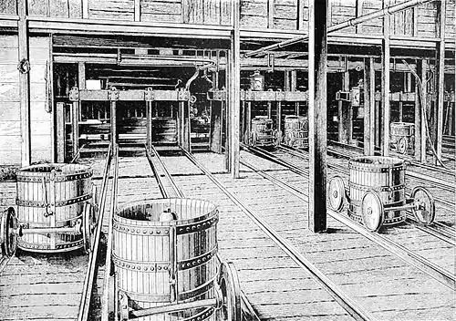 Fig. 4.—Interior of Curb Room in Factory, showing the Iron Cylinders in which the Scrap is Pressed.