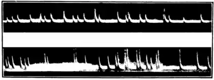 Fig. 7. Record with String Electrometer, Upper Record for Beta Particles. Lower for Alpha Particles.
