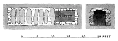 Plan and Section of Chamber in Greenmount Tumulus. From a drawing by General Lefroy.
