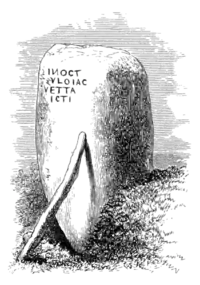 It is of about their age, and therefore as old as any of the other stones in Scotland; and there is also a third at Yarrow,[2] with a later inscription, which seems about the same age as the Lothian example. Now the curious part of this matter is, that having begun with alphabetic writing, they entirely discontinued it, and during the six or seven centuries through which these sculptured stones certainly extend, it is the rarest possible thing to find one with an alphabetic inscription; and why this should be so is by no means clear. Take, for instance, the Aberlemmo stone just quoted. The people who erected it were Christians,—witness the cross: the ornaments on it are almost identical with those found in Irish MSS. of the seventh and eighth centuries.[3] It is thus evident that the persons who drew these ornaments could write, and being able to write and carve with such exquisite precision, it seems strange they never thought of even putting the name of the persons who erected the stone or some word expressive of its purpose. The Irish probably would have done so; and the Scandinavians would have covered them with Runes, as they did those they erected in the Isle of Man, though probably at a some- what later date. In the instance of the two crosses illustrated in the woodcuts, Nos. 97 and 98, the first bears an inscription to the effect that "Sandulf the Swarthy erected this cross to his wife, Arnbjörg." From their names, both evidently of Scandinavian origin. The inscription on the side of the second runs thus: "Mal Lumkun erected this cross to his foster-father Malmor, or Mal Muru."[4] Both names of undoubted Gaelic derivation, thus