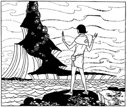 Henry followed the course of the river which flowed entirely around the mountain but everywhere it was equally wide and deep and he saw neither bridge nor boat. Poor Henry seated himself on the bank of the river, weeping bitterly.