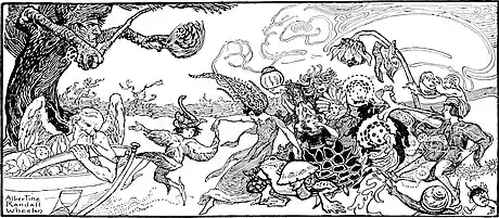 “When the evening star has set,” came the answer from very close by. And right there was another herald, without a trumpet—one clad in a velvety-purple tunic—bowing before her. Indeed, they were everywhere, all among the garden-folk, rushing about, urging the importance of haste, taking charge and directing.