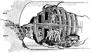 PUSHING THE SHIELD THROUGH SILT AND ROCK.