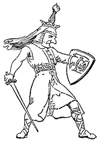 "Who is it who trys to steal my horse and my bit?" he roared out.