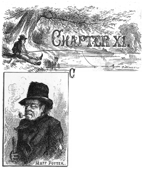 A gory knife had been found close to the murdered man, and it had been recognized by somebody as belonging to Muff Potter—so the story ran, And it was said that a belated citizen had come upon Potter washing himself in the "branch" about one or two o'clock in the morning, and that Potter had at once sneaked off—suspicious