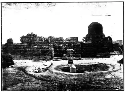 Main shrine at Sarnath, as excavated in 1905, back view. (Photo taken, May, 1909).