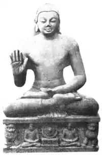Image of Buddha dedicated in G. E. 129 in the reign of Kumaragupta I at Mankuwar, Tahsil Karchchhana, District Allahabad (now in the Lucknow Museum).