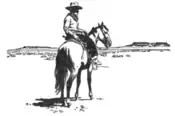 ⟨As a cowb⟩oy, he ⟨gave himself⟩ up to ⟨the arts and⟩ the fol⟨lies of the ran⟩ge. His brother Ben says that every other item on the ranch bills sent to him in those days was for either whisky or cartridges, but when he went up there to "kick," Frank had malaria to show for the liquor and, to justify the ammunition, he threw a tin can out in front of the shack, and, with a six-shooter, moved it shot by shot across the ground out of range. He was teaching himself to shoot, and the other cowboys were teaching him to ride and rope and "dance."
