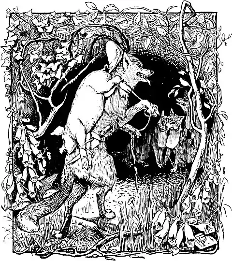 At this the fox was so angry that he dashed with all his force against the wall, and tried to knock it down. But it was too strong and well-built; and though the fox scraped and tore at the