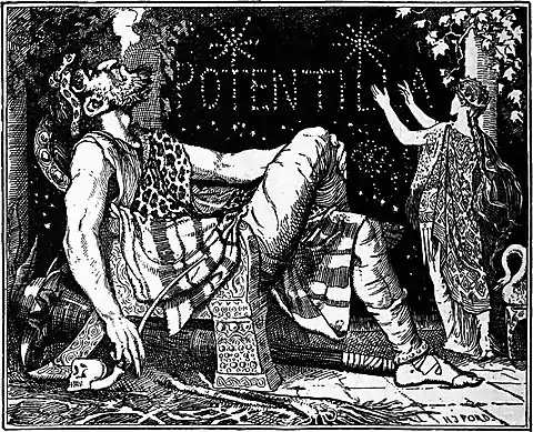 politely to the tiresome old Enchanter, whom she detested, he could not help seeing that he failed to please her, and then he began to suspect very strongly that she must love someone else, and that somebody besides Melinette was responsible for all the festivities he had witnessed. So after much consideration he devised a plan for finding out the truth. He went to the Princess suddenly, and announced that he was most unwillingly forced to leave her, and had come to bid her farewell. Potentilla could scarcely hide her delight when she heard this, and his back was hardly turned before she was entreating Prince Narcissus to make himself visible once more.