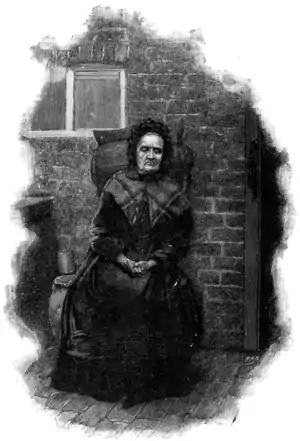 Old retainers of the Tennyson family still survive. Here is the portrait of an old dame who now sits in her chimney-corner and says, "Poet or no poet, I carried him on my back when he was a baby." This is the old servant, to whom the Laureate wrote so pleasantly in response to her congratulations on his becoming a peer. She remembers Arthur Hallam visiting the Rectory, and the distress occasioned there on the receipt of the news of his death. Although quite blind, the old lady is sprightly and cheerful, notwithstanding her extremely humble circumstances.