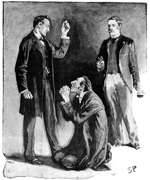 Ryder threw himself down suddenly upon the rug, and clutched at my companion's knees. "For God's sake, have mercy!" he shrieked. "Think of my father! Of my mother! It would break their hearts. I never went wrong before! I never will