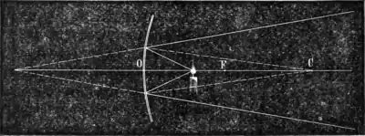 a concave mirror, and the particular point at which we suppose we see our reflection is called the virtual focus.