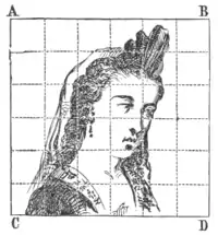 Suppose the portrait in fig. 62 to be divided horizontally and vertically by equidistant lines comprehended within the square A B C D.