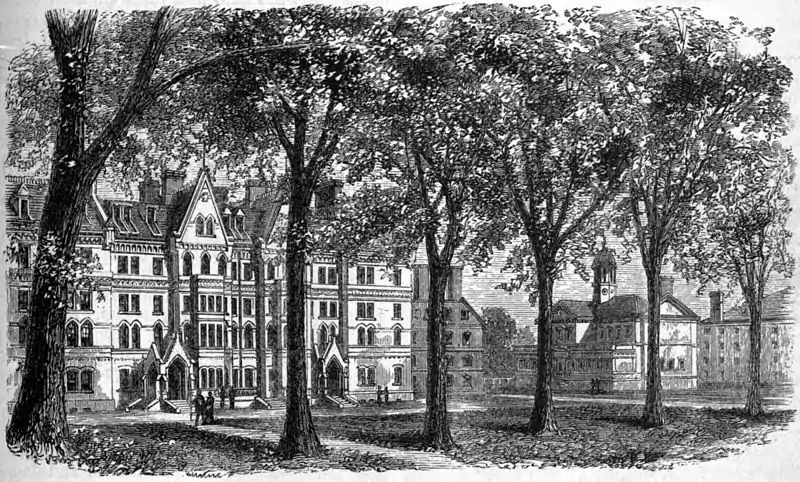 HARVARD UNIVERSITY, the oldest and the most amply endowed institution of learning in the United States, situated in Cambridge, 3 m. W. of Boston, Mass. Six years after the first settlement of this region by the English the following entry appears on their records, under date of Oct. 28, 1636: “The court agreed to give 400l. towards a schoale or colledge, whearof 200l. to bee paid the next yeare, and 200l. when the worke is finished, and the next court to appoint wheare, and what building.” The next year the court ordered that the college should be at “Newetowne,” and designated the governor and deputy governor, with ten others, including the principal laymen and ministers of the colony, among whom were John Cotton and John Winthrop, to have charge of the undertaking. Under date of March 13, 1639, it was “ordered, that the colledge agreed upon formerly to bee built at Cambridg shal bee called Harvard Colledge.” By the change of the name Newtown to Cambridge it was designed to honor the famous English university, of which some of the early settlers were graduates, and the name Harvard was given to the institution in recognition of the liberal endowment of about £700 left by the will of the Rev. John Harvard in 1638. It is doubtful whether the original grant of £400 was ever actually paid. It is certain that the project for a college lay in abeyance until the bequest of Harvard at once initiated the necessary measures. In 1638 a class began a course of study in the college under Nathaniel Eaton. The first class graduated, in 1642, consisted of nine members. Efforts were made to educate a few of the aborigines as teachers of their own race, but only one Indian was ever graduated. In 1642 the general government of the college and the management of its funds were vested in a board of overseers, consisting of “the governor and deputy governor for the time being, and all the magistrates of this jurisdiction, together with the teaching elders of the six next adjoining towns—viz., Cambridge, Watertown, Charlestown, Boston, Roxbury, and Dorchester—and the president of the said college.” In 1650 the general court granted a charter to the college, under which it became a corporation with the title of the “President and Fellows of Harvard College,” consisting of the president, five fellows, and a treasurer or bursar, to have perpetual succession by the election of members to fill vacancies. In October, 1680, by order of the general court, the ferry between Boston and Charlestown was granted to the college. The town of Cambridge gave several parcels of land, as did other public bodies and private individuals. The legislatures of the colony, province, and state of Massachusetts made grants, in early times regular ones annually, to pay the salary of the president, and to aid in the support of some one or two other officers or teachers in the college, as also occasional gifts for special purposes; while lotteries were chartered to obtain money for building some of the older college halls. The last grant made to the college from the public treasury was in 1814. When a constitution was framed for the commonwealth in 1780 the perpetual enjoyment of all their vested rights and powers was secured to the president and fellows of Harvard college, and the council and senate were made the successors of the magistrates in the board of overseers as constituted in 1642. The organization of the board of overseers, under the direction of the legislature, underwent various changes until 1865, when the connection of the college with the commonwealth was dissolved, and the control of the university was vested in its alumni. Besides the president and treasurer of the university, who are ex officio members, the board consists of 30 members, divided into six classes, of five each, who after a term of six years go out of office in rotation, five overseers being elected by the alumni each year. The first election of overseers by the alumni was held in Cambridge on commencement day in 1866. Only inhabitants of the state are eligible as members of the board, and no alumnus is “entitled to vote for overseers before the fifth annual election after the graduation of his class.” The first degree of D. D. ever granted by the institution was conferred upon Increase Mather in 1692. A few years later Harvard college received the first of a series of munificent gifts from the Hollis family, including some valuable books. In 1764 the library was destroyed by fire, and about 6,000 volumes were lost, including all of Harvard's books except one, the oriental collection bequeathed by Dr. Lightfoot, and the Greek and Roman classics presented by Bishop Berkeley. Harvard has had presidents, as follows: