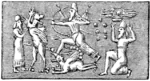 Fight between Bel and the Dragon, from Babylonian cylinder.