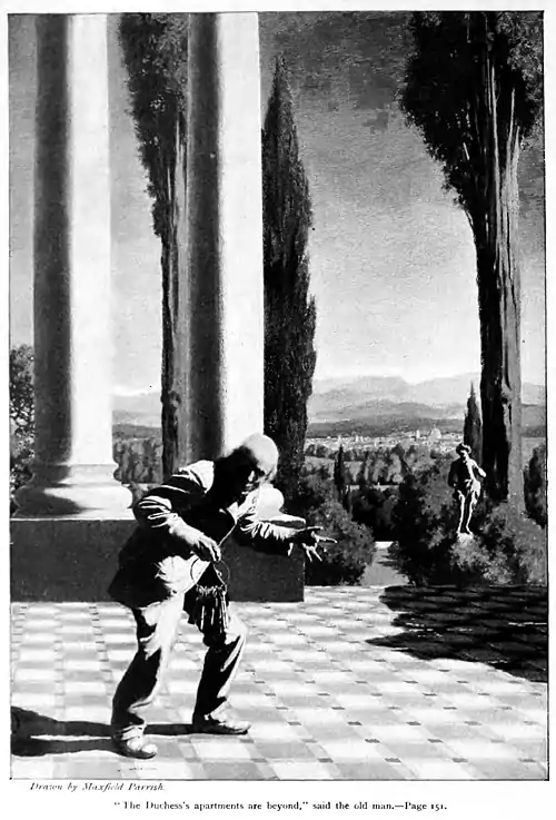 "What happened there I don't know—my grandmother could never get at the rights of it, for Nencia was mute as a fish where her lady was concerned—but when they came back to Vicenza the Duke ordered the villa set in order; and in the spring he brought the Duchess here and left her. She looked happy enough, my grandmother said, and seemed no object for pity. Perhaps, after all, it was better than being shut up in Vicenza, in the tall painted rooms where priests came and went as softly as cats prowling for birds, and the Duke was forever closeted in his library, talking with learned men. The Duke was a scholar; you noticed he was painted with a book? Well, those that can read 'em make out that they're full of wonderful things; as a man that's been to a fair across the mountains will always tell his people at home it was beyond anything they'll ever see. As for the Duchess, she was all for music, play-acting, and young company. The Duke was a silent man, stepping quietly, with his eyes down, as though he'd just come from confession; when the Duchess's lap-dog yapped at his heels he danced like a man in a swarm of hornets; when the Duchess laughed he winced as if you'd drawn a diamond across a window-pane. And the Duchess was always laughing.