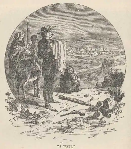 “Then once more I bowed my head. It is no shame to have wept in Palestine. I wept, when I saw Jerusalem, I wept when I lay in the starlight at Bethlehem. I wept on the blessed shores of Galilee. My hand was no less firm on the rein, my anger did not tremble on the trigger of my pistol when I rode with it in my right hand along the shore of the blue sea” (weeping.) “My eye was not dimmed by those tears nor my heart in aught weakened. Let him who would sneer at my emotion close this volume here, for he will find little to his taste in my journeyings through Holy Land.”