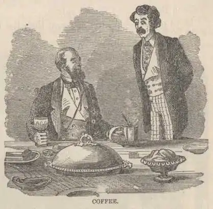 It had long ago been decided in a noisy public meeting in the main cabin that we could not go to Lisbon, because we must surely be quarantined there. We did every thing by mass-meeting, in the good old national way, from swapping off one empire for another on the programme of the voyage down to complaining of the cookery and the scarcity of napkins. I am reminded, now, of one of these complaints of the cookery made by a passenger. The coffee had been steadily growing more and more execrable for the space of three weeks, till at last it had ceased to be coffee altogether and had assumed the nature of mere discolored water—so this person said. He said it was so weak that it was transparent an inch in depth around the edge of the cup. As he approached the table one morning he saw the transparent edge—by means of his extraordinary vision long before he got to his seat. He went back and complained in a high-handed way to Capt. Duncan. He said the coffee was disgraceful. The Captain showed his. It seemed tolerably good. The incipient mutineer was more outraged than ever, then, at what he denounced as the partiality shown the captain’s table over the other tables in the ship. He flourished back and got his cup and set it down triumphantly, and said: