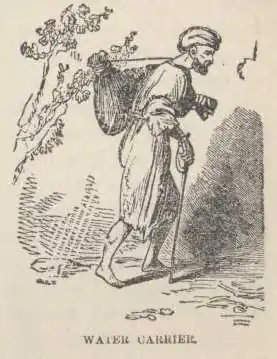 There is an honored old tradition that the immense garden which Damascus stands in was the Garden of Eden, and modern writers have gathered up many chapters of evidence tending to show that it really was the Garden of Eden, and that the rivers Pharpar and Abana are the “two rivers” that watered Adam’s Paradise. It may be so, but it is not paradise now, and one would be as happy outside of it as he would be likely to be within. It is so crooked and cramped and dirty that one can not realize that he is in the splendid city he saw from the hill-top. The gardens are hidden by high mud-walls, and the paradise is become a very sink of pollution and uncomeliness. Damascus has plenty of clear, pure water in it, though, and this is enough, of itself, to make an Arab think it beautiful and blessed. Water is scarce in blistered Syria. We run railways by our large cities in America; in Syria they curve the roads so as to make them run by the meagre little puddles they call “fountains,” and which are not found oftener on a journey than every four hours. But the “rivers” of Pharpar and Abana of Scripture (mere creeks,) run through Damascus, and so every house and every garden have their sparkling fountains and rivulets of water. With her forest of foliage and her abundance of water, Damascus must be a wonder of wonders to the Bedouin from the deserts. Damascus is simply an oasis—that is what it is. For four thousand years its waters have not gone dry or its fertility failed. Now we can understand why the city has existed so long. It could not die. So long as its waters remain to it away out there in the midst of that howling desert, so long will Damascus live to bless the sight of the tired and thirsty wayfarer.