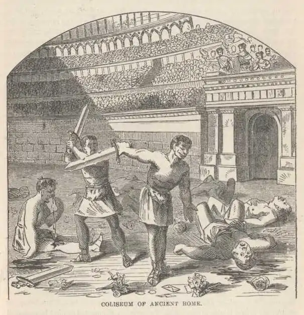 Seventeen or eighteen centuries ago this Coliseum was the theatre of Rome, and Rome was mistress of the world. Splendid pageants were exhibited here, in presence of the Emperor, the great ministers of State, the nobles, and vast audiences of citizens of smaller consequence. Gladiators fought with gladiators and at times with warrior prisoners from many a distant land. It was the theatre of Rome--of the world--and the man of fashion who could not let fall in a casual and unintentional manner something about “my private box at the Coliseum” could not move in the first circles. When the clothing-store merchant wished to consume the corner grocery man with envy, he bought secured seats in the front row and let the thing be known. When the irresistible dry goods clerk wished to blight and destroy, according to his native instinct, he got himself up regardless of expense and took some other fellow’s young lady to the Coliseum, and then accented the affront by cramming her with ice cream between the acts, or by approaching the cage and stirring up the martyrs with his whalebone cane for her edification. The Roman swell was in his true element only when he stood up against a pillar and fingered his moustache unconscious of the ladies; when he viewed the bloody combats through an opera-glass two inches long; when he excited the envy of provincials by criticisms which showed that he had been to the Coliseum many and many a time and was long ago over the novelty of it; when he turned away with a yawn at last and said,