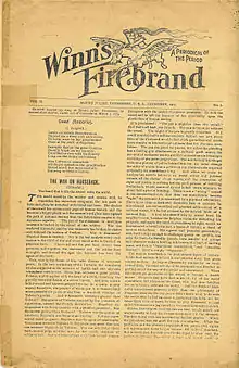 It is proclaimed: "The pen is mightier than the sword." And that's all bosh, my friends. The pen is impotent without the sword. The might of the pen is greatly overrated. If I could marshal half a million muskets behind my pen, every issue of the Firebrand would effect stock quotations and create more anxiety in international cabinets than the Panama revolution. The pen can plead for justice, but unless the pleading has a Gatling gun attachment or a political graft annex, the net total of realizable results wouldn't materialize a microscopic visibility of pin-point proportions. The intellectual ink-slinger without a platoon of police behind him can no more change the order of events than a politician can eliminate the acquired propensity for roundabout lying. And when we come to analyze the world's last word on social ethics and political morals, all the chatter about equity, and the conception of right and justice, is nothing but the puril palaver of babbling balderdash, which, summed up and boiled down, amounts to about half a pint of humbug. There is not a "wrong" named in the conventional code that does not immediately become "right" the moment it is sanctioned by a pin-head officialdom. There is no crime so dark and damnable that it cannot by transformed into the sanctified and glorified achievement of a national virtue, if it be but covered by the painted folds of a national flag. A man who should take by armed force his neighbor's farm, butcher the helpless victim for defending his property, and apply the torch to everything in sight, would be denominated a brutal criminal, a hyena of infamy, a fiend of wanton wickedness. But a great and powerful government, with battle-ships enough to challenge querry or quibble, can seize the land of a friendly people, burn, murder and pillage and otherwise make a howling wilderness of a land of smiling peace, and that is "benevolent assimilation," and "manifest destiny." That is simply "expansion."
