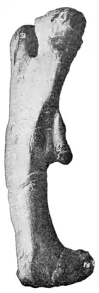 - ↑ [Recent evidence (Romer, 1924) indicates that this process is not homologous with the true "lesser trochanter" of mammals. A better name for it is "internal trochanter."—Ed.]