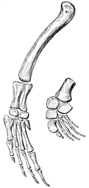 In the swimming feet of Lariosaurus (Fig. 149) of the Nothosauria the carpus is also reduced, the radiale apparently the most conspicuous for its absence.