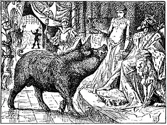 So the time passed, till lo and behold! one fine day an enormous pig from the North walked into the palace, and going straight
