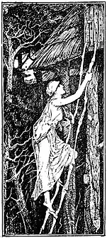 For three days and three nights she struggled through it, but could find nothing. She was quite worn out with weariness and hunger, and even her staff was no further help to her, for in her many wanderings it had become quite blunted. She almost gave up in despair, but made one last great effort, and suddenly in a thicket she came upon the sort