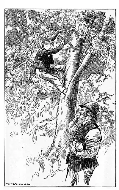 'An' the bootmarks,' William went on; 'much too deep and plain they was for anybody as was out to get off, with somebody arter them. Let alone as I see a bit of young master's jacket up in the tree as we come over the park. And the ankercher dropped so handy. Not but what I own I thought it was all up when we come to that letter. I did think that was a bit too thick. As if people on the bolt 'ud stop to write letters and lay them convenient like in the middles of roads. I thought you'd killed the cat with kindness that time. But, no—'e swallowed it all, old Poad did; like mother's milk it went down. And so did the schoolmaster. And off 'e goes. And off he goes. And off you goes to your dinners, and I come along to the young chap in the tree and fetched him a bite of something, and whistles him down that all's serene. And Miss Caroline she comes along and makes me a member of her Ancient Order of Rosy Buffaloes, or whatever it is, and here we are as jolly as you please and as safe as you please. Only my advice is, tell the Master.'