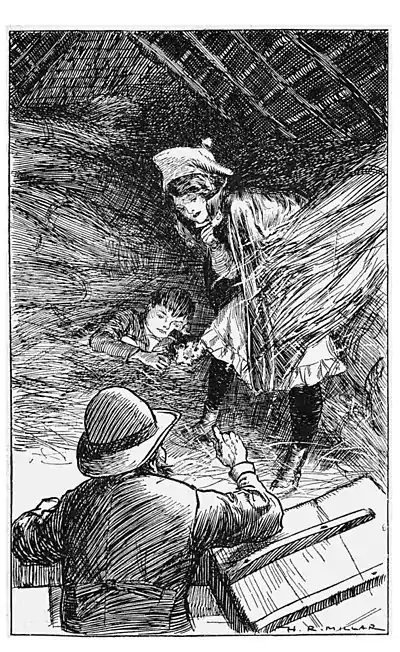 The children dined alone, and the cook remarked on the sudden growth of their appetites. How was she to know that generous double helpings of beef, Yorkshire pudding, potatoes, summer cabbage, rhubarb-pie, and custard were hidden behind the books on the dining-room shelf, for the later refreshment of a runaway boy at present hidden in the straw-loft?