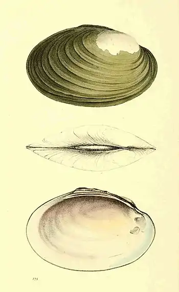 - Shell transversely oval, thin, within purple; cardinal teeth tuberculated, nearly obsolete.