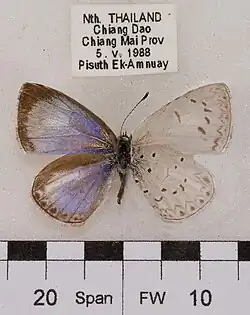 Lectotype: ♂ BMNH: "Type, Nilgiris. S. slopes. 3000ft Aug. 88. Hampson 89.53, Cyaniris puspa var. lilacea Hamp."