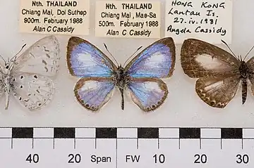 - Eliot, J. N. & Kawazoé, A. 1983. Blue butterflies of the Lycaenopsis group. British Museum (Natural History), London. ISBN 0-565-00860-9. Reference page.
