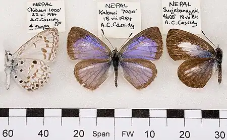 - Lycaenopsis puspa gisca with dry season form artena Fruhstorfer, 1917: 25. Lectotype BMNH ♂, India, Sikkim. [Infrasubspecific name] designated by Eliot & Kawazoé, 1983: 174.