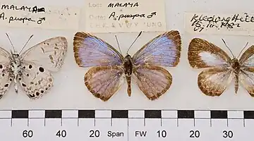 - Celastrina puspa lambi (Distant) Eliot, 1978: 251, pl. 20, figs 26 ♂, 27 ♀.