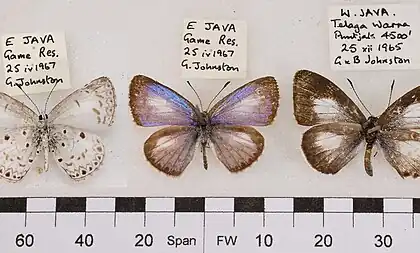 - Lycaenopsis puspa (Horsfield) Chapman, 1909: 437, figs. 71, 72, 78 ♂ genit.