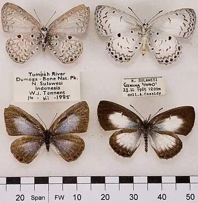 - Cassidy, A.C. 1995. On the Lycaenopsis group of genera (Lepidoptera, Lycaenidae) of the Sulawesi Region. Transactions of the Lepidopterological Society of Japan 46: 45–62. PDF. Reference page.