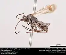 - Krogmann, L. & Austin, A.D. 2012. Systematics of Australian Agenioideus Ashmead (Hymenoptera: Pompilidae) with the first record of a spider wasp parasitizing Latrodectus hasselti Thorell (redback spider). Australian Journal of Entomology 51(3): 166–174. DOI: 10.1111/j.1440-6055.2011.00850.x