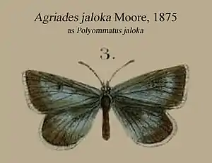 - Polyommatus jaloka Moore, 1875: 573, pl. 66, fig 3.