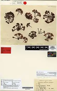 - Lectotype: Lindauer; 1940-02-25; at low water. AKU at AK herb. Lindauer, No. 1774 (= AKU 100252), designated by Chapman (1979: 362). Isolectotypes: specimens Alg. Nova-Zel. Exsicc. No. 145.