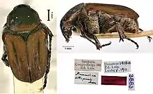 - Schoolmeesters, P. 2017. Scarabs: World Scarabaeidae Database (version Jul 2016). In: Roskov Y., Abucay L., Orrell T., Nicolson D., Bailly N., Kirk P., Bourgoin T., DeWalt R.E., Decock W., De Wever A., Nieukerken E. van, Zarucchi J., Penev L., eds. 2017. Species 2000 & ITIS Catalogue of Life, 30th January 2017. Digital resource at www.catalogueoflife.org/col. Species 2000: Naturalis, Leiden, the Netherlands. ISSN 2405-8858. Reference page. [accessed on April 27, 2017]