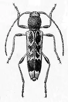 - Thomson, J. 1857. Description de cérambycides nouveaux ou peu connus de ma collection. Archives Entomologiques: ou recueil contenant des illustrations d'insectes nouveaux ou rares 1: 291–320. BHL Reference page. : 315